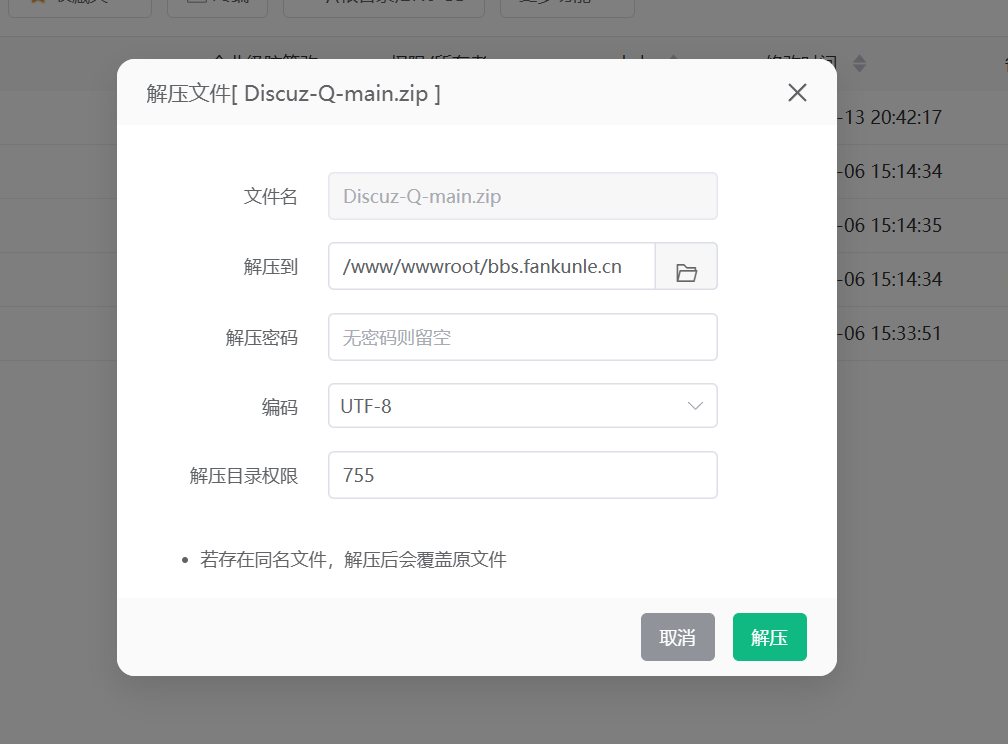 上传完成后解压即可