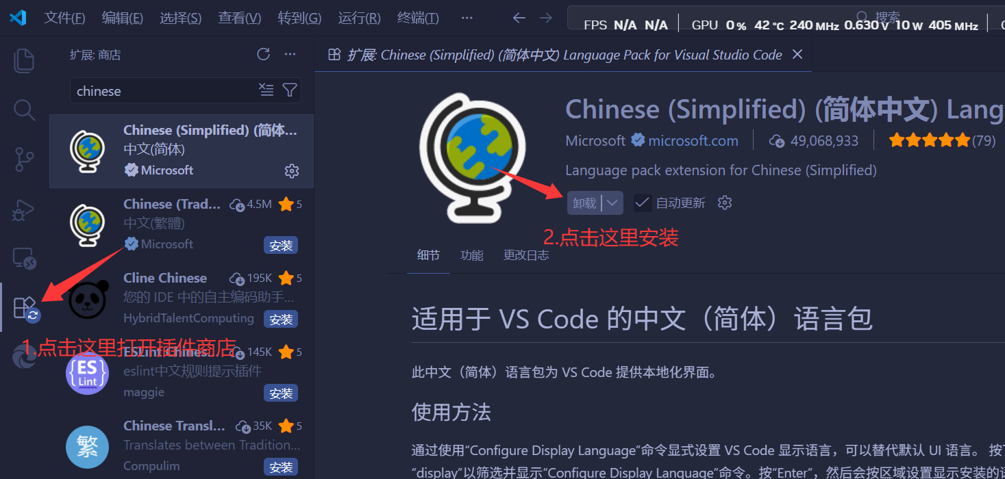 因为这个编辑器默认是全英文的,没用过的看着可能会有些吃力,所以这里我们汉化一下(这个根据自己的情况自己选择是否安装汉化插件)