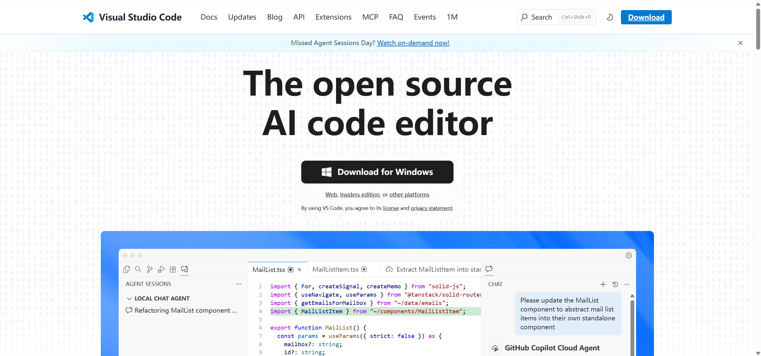 以下是Visual Studio Code的官网:Visual Studio Code - The open source AI code editor