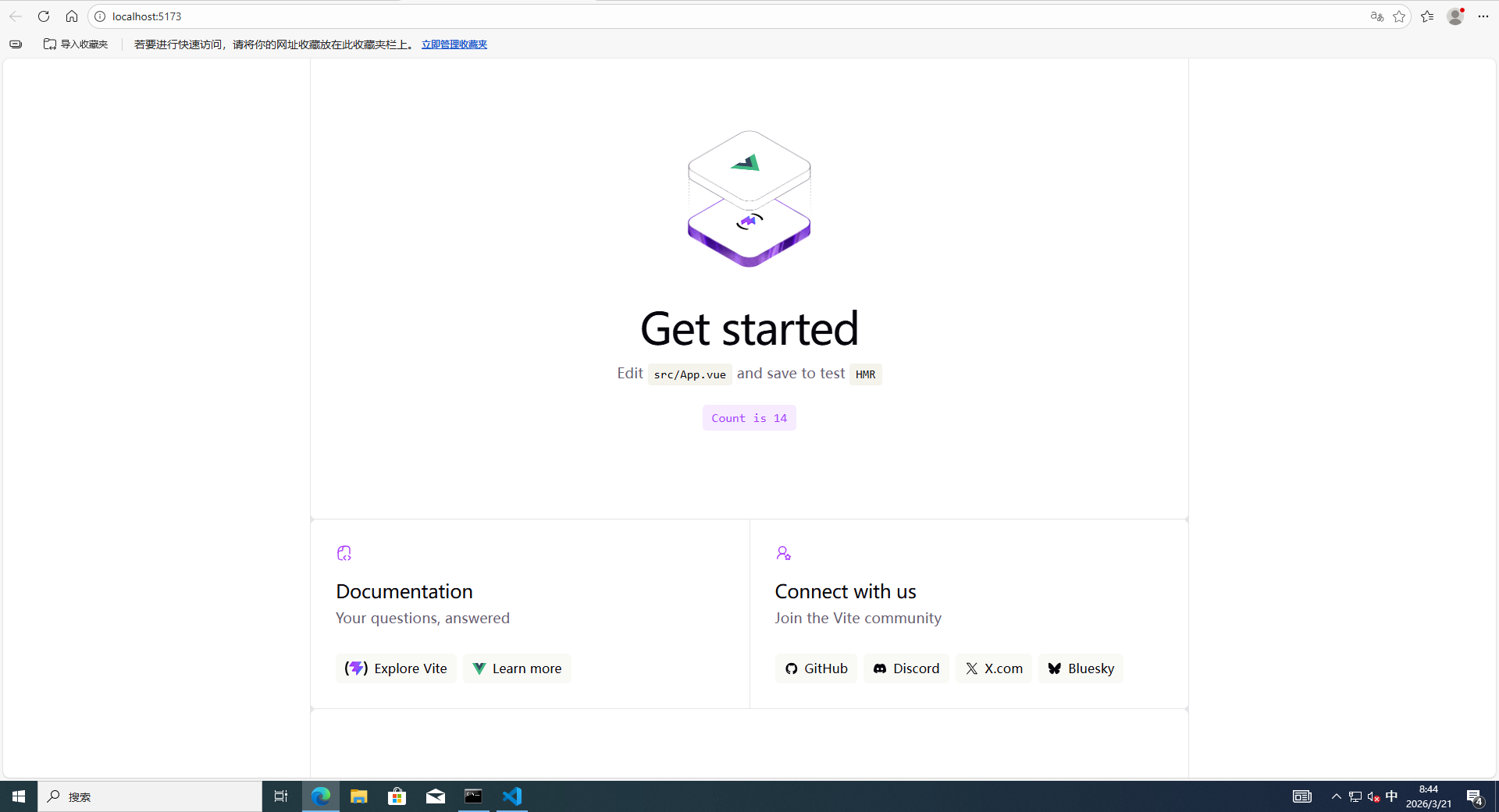 进入这个地址 http://localhost:5173/ 就会看到我们的项目效果了