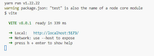随后我们启动项目,使用命令yarn dev ,随后控制台就会输出项目的访问地址了