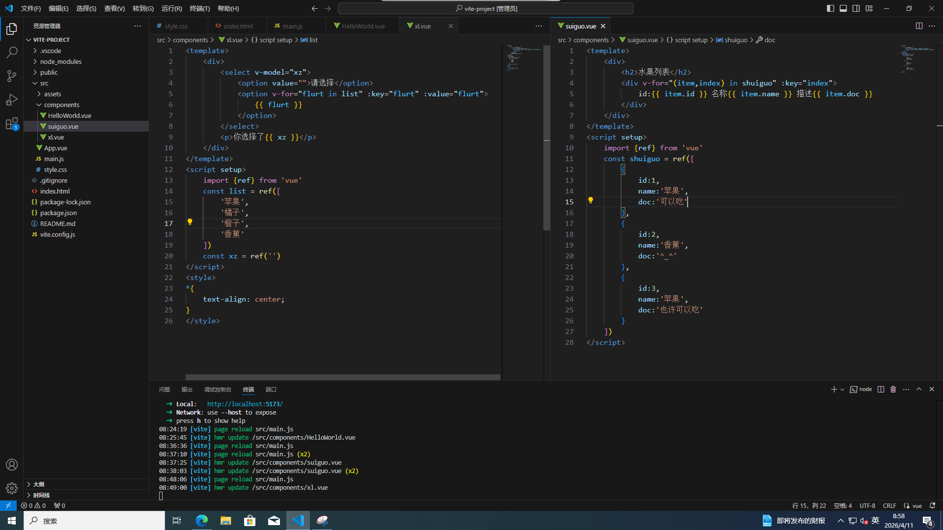 <div v-for="(item,index) in shuiguo" :key="index">