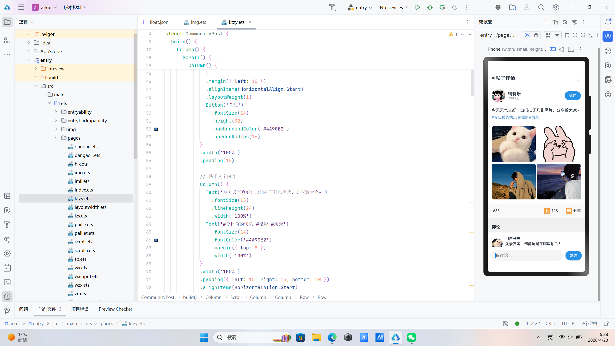 在项目文件下的\entry\src\main\resources\base\element\float.json 文件中可以设置统一大小,新建一个方法name:yayale 值是200vp