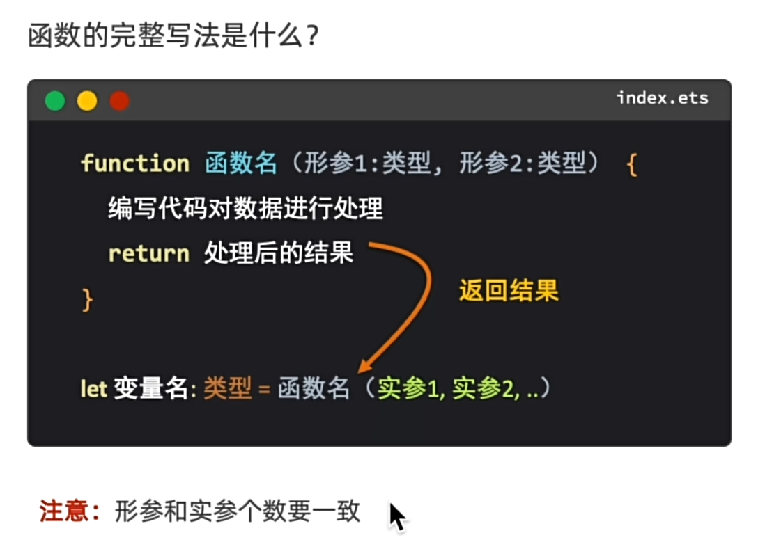 let 变量名:类型 = 函数名(实际要处理的数据)