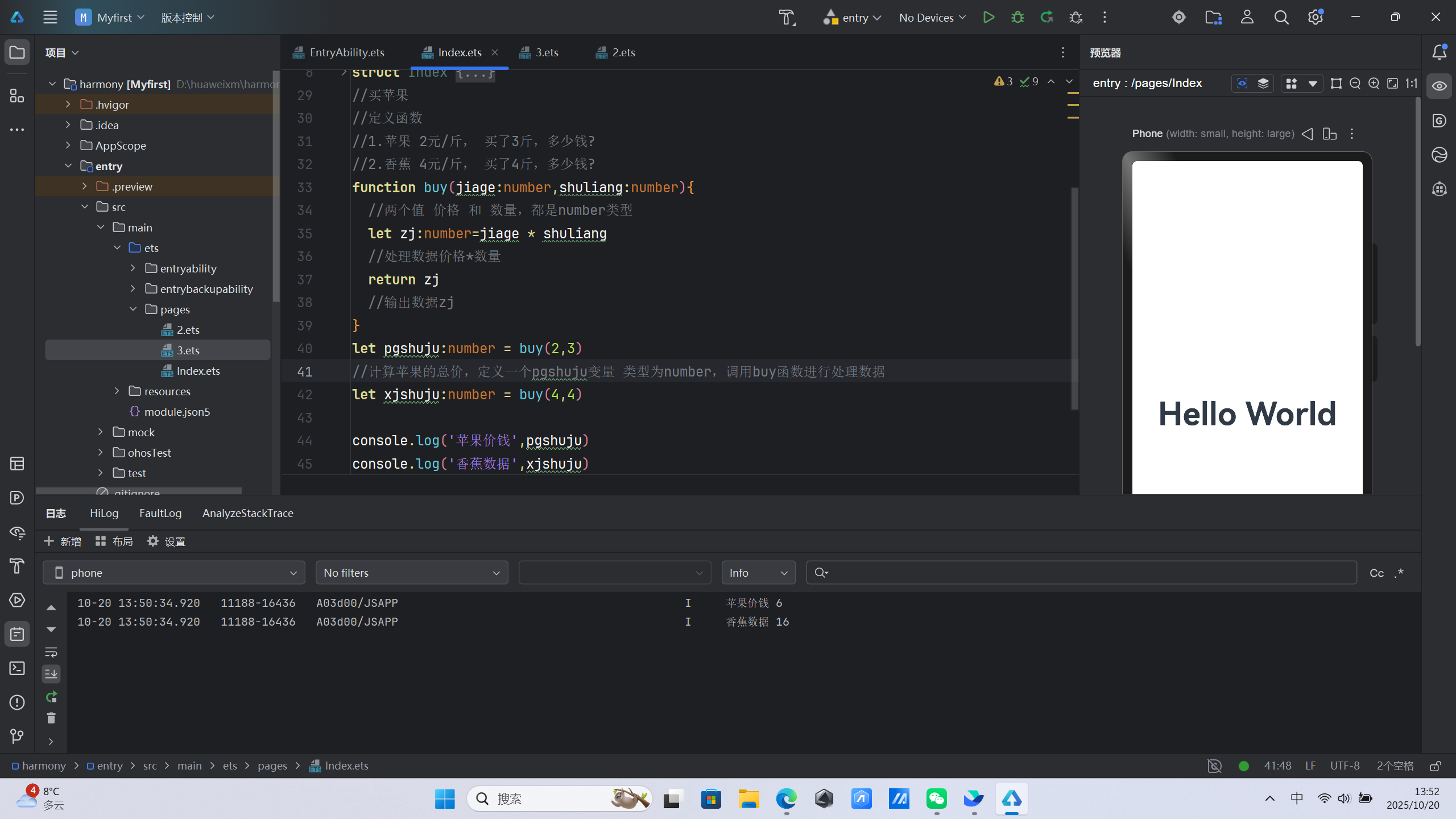 //计算苹果的总价,定义一个pgshuju变量 类型为number,调用buy函数进行处理数据