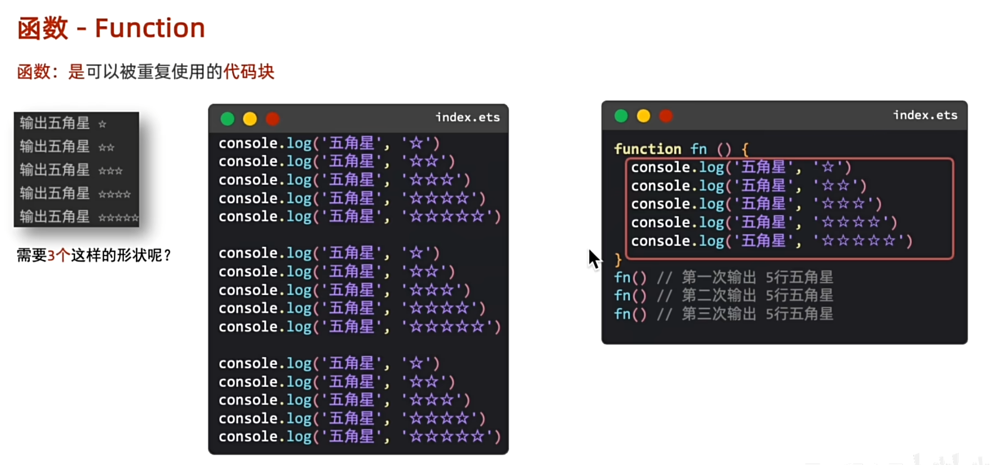 作用:函数可以把具有相同或相似逻辑的代码“包裹”起来,有利于代码复用